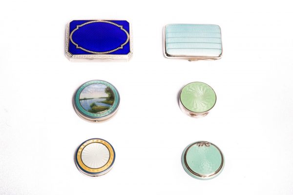 Colección de cajitas realizada en plata y esmalte guilloche, danesas e inglesas.