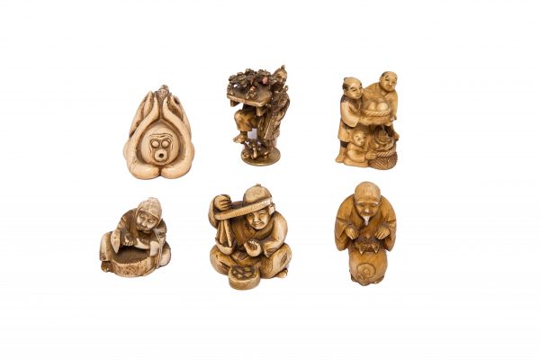 Colección de netzukes realizados en marfil, periodo meiji, siglo XIX, firmados.