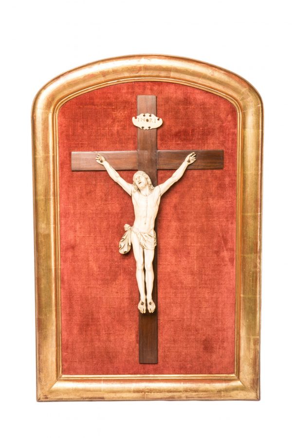 Cristo realizado en marfil tallado a mano, Francia, siglo XIX. Altura 30cm.