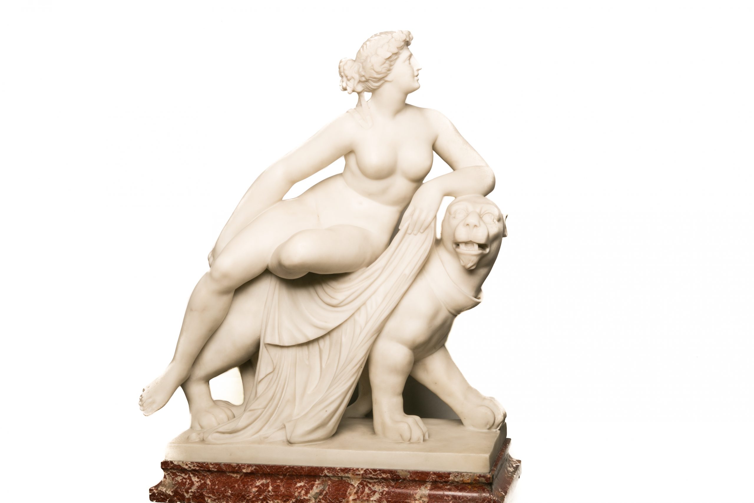 Escultura italiana realizada en mármol de Carrara “Ariadna sobre la pantera” siglo XIX.