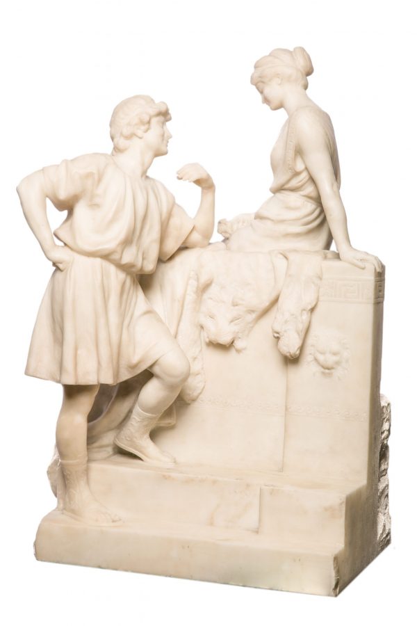Escultura italiana realizada en marmol de carrara “Romeo y Julieta” por Vittorio Caradossi, siglo XIX. Altura 78cm.