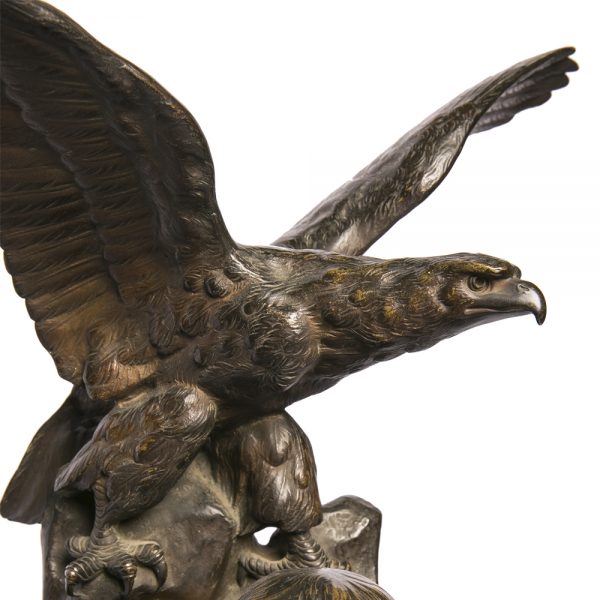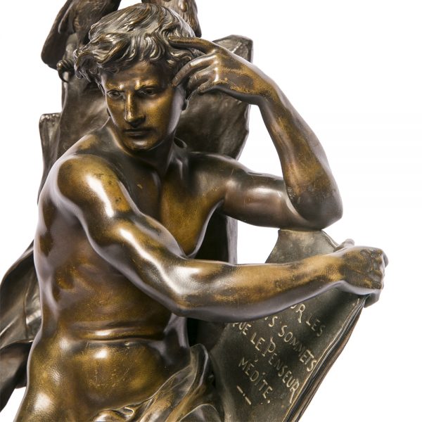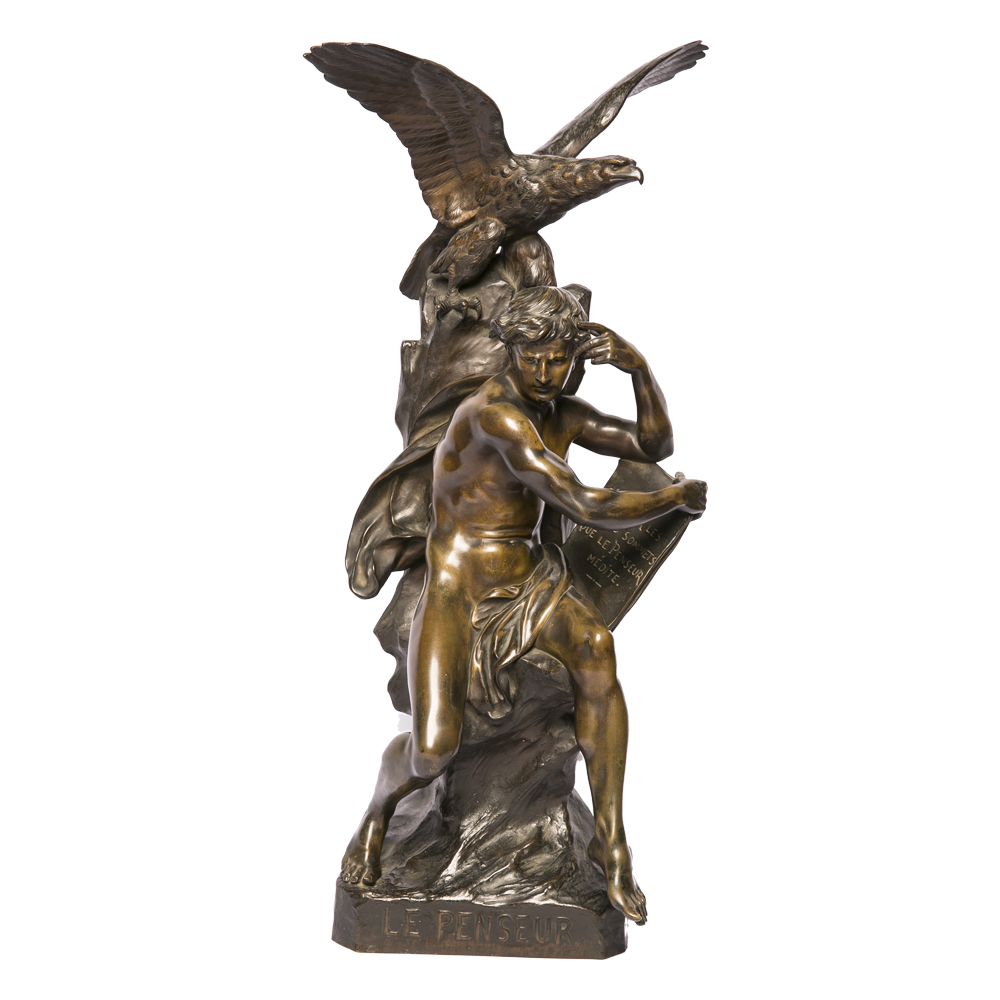 Escultura realizada en bronce patinado “Le Penseur” por Émile Picault, siglo XIX, Francia. Altura 73cm.