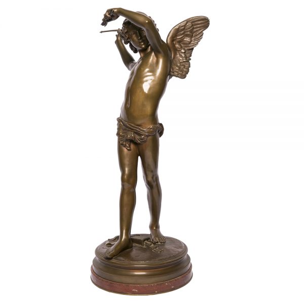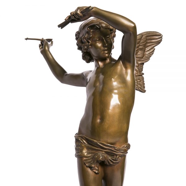 Escultura realizada en bronce patinado “Cupido” por Auguste Moreau Vauthier fundicion Thiebaut Freres, siglo XIX, francia. Altura 80cm.