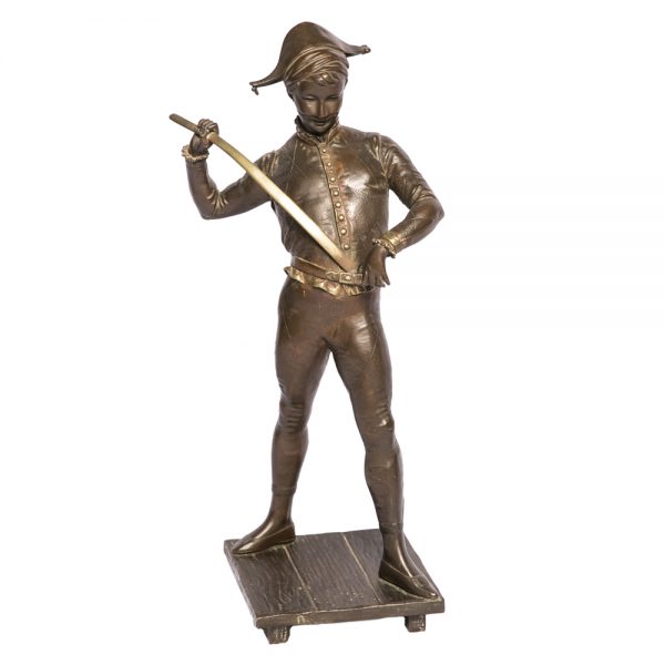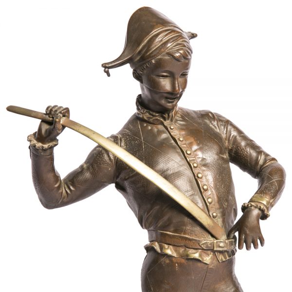 Escultura realizada en bronce patinado “Arlequin” firmada Paul Dubois, siglo XIX, francia. Altura 58cm