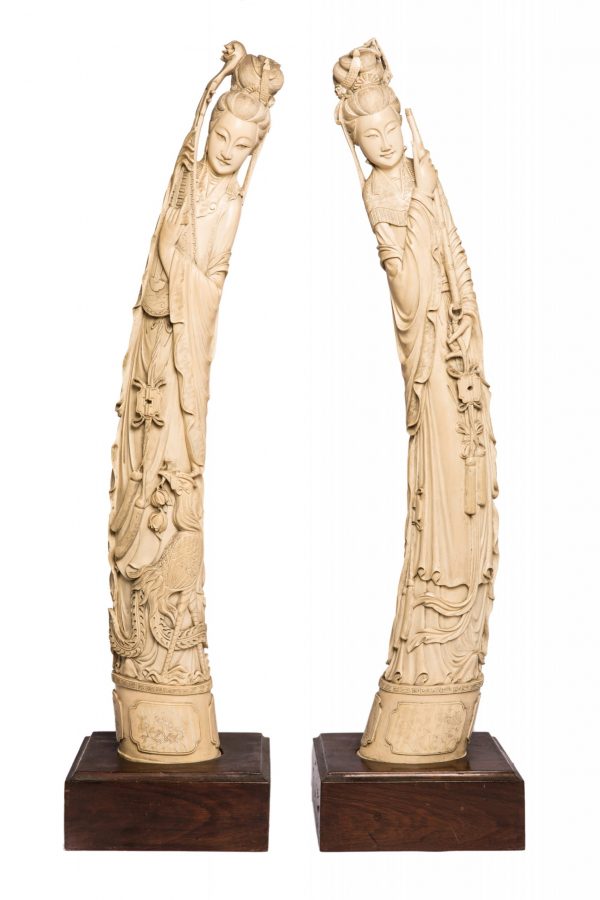 Importante par de marfiles chinos, firmados, siglo XIX. Altura 90cm