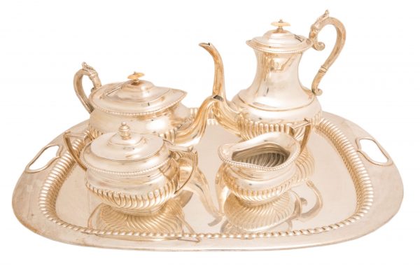 Juego de te ingles estilo Jorge III realizado en bronce plateado, siglo XIX.