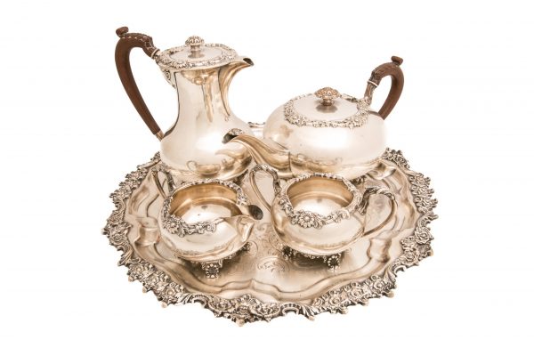 Juego de te ingles estilo Reina Victoria realizado en bronce plateado, siglo XIX.