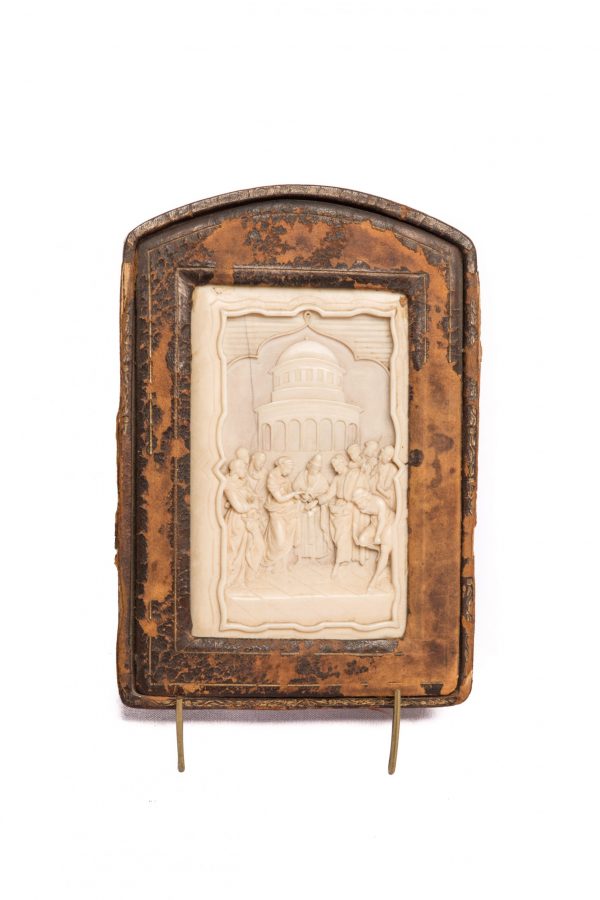 Placa en marfil tallada a mano italiana, siglo XIX.