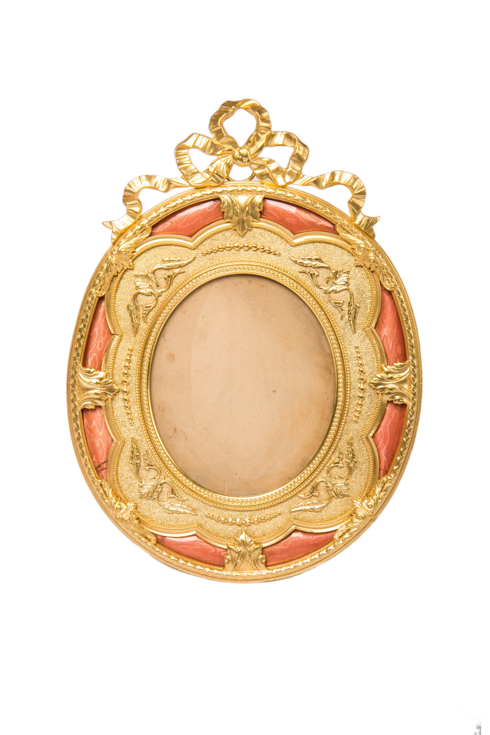 Portarretrato francés en bronce dorado al mercurio y esmalte Guilloché
